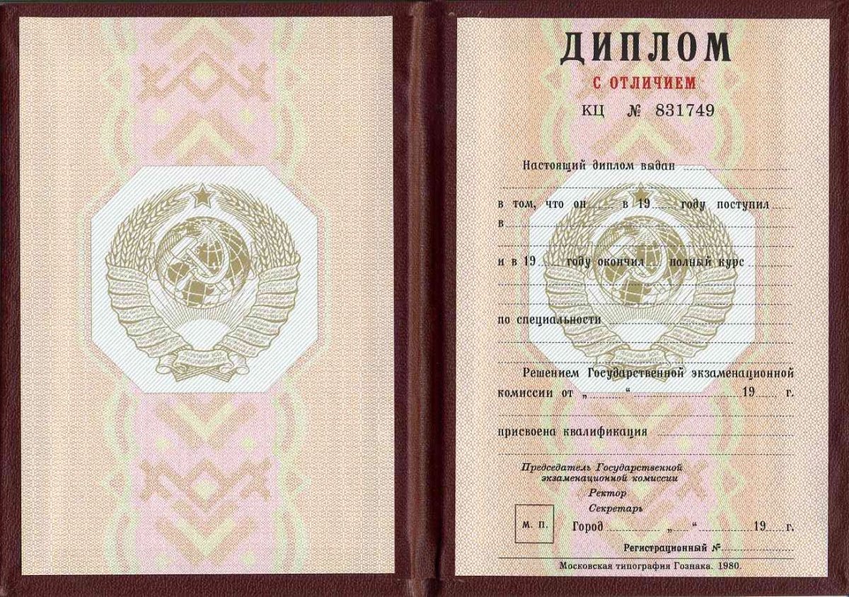 Диплом специалиста с отличием до 1996 года